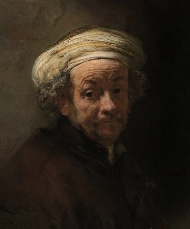 This kind of questioning often comes as a result of personal suffering. Rembrandt experienced triumph and tragedy — he watched his wife and children die, and he went from being one of the most esteemed painters in Amsterdam to personal bankruptcy. He also showed himself to be capable of inflicting suffering on others, notably through an ugly legal battle with his lover Geertje Dircx that ended with he imprisoned in an insane asylum. The eyes of Rembrandt in his late self-portraits are unflinching, yet full of questions for himself and for us.